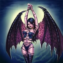Succubus (pronounced ˈsʌkjʊbəs) (beware of the pronunciation!) (plural = succubi) = (noun) A female demon believed to have sexual intercourse with sleeping men. See https://www.youtube.com/watch?v=ow27a88v6dQ and https://upload.wikimedia.org/wikipedia/commons/6/6b/Succubus_bracket_02.jpg and https://vignette.wikia.nocookie.net/wowwiki/images/5/5e/Succubus.%28Warcraft%29.full.500748.jpg/revision/latest/scale-to-width-down/286?cb=20140409020854 and https://vignette.wikia.nocookie.net/warriorsofmyth/images/a/af/Command_Succubus_Large.jpg/revision/latest/scale-to-width-down/212?cb=20121027102230