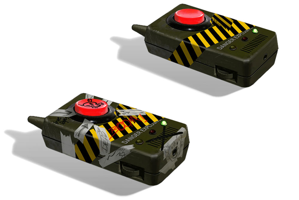 · Detonator (pronounced ˈdet.(ə)n.eɪ.tə(r)) = (noun) A device or small sensitive charge used to detonate an explosive. For a bomb detonator See https://upload.wikimedia.org/wikipedia/commons/6/6d/Eod2.jpg and https://upload.wikimedia.org/wikipedia/commons/2/2c/Detonator.jpg and and https://vignette4.wikia.nocookie.net/michaelbaybatman/images/8/8c/Bao-joker-bomb-detonator.jpg/revision/latest?cb=20140107170208 For a grenade detonator See http://www.passioncompassion1418.com/decouvertes/ImagesDecouvertes/Grenades/MillsSchema.jpg For explosive dynamite sticks detonator See https://thumbs.dreamstime.com/z/explosive-dynamite-sticks-detonator-white-27031876.jpg // (UK English) Another term for fog signal.